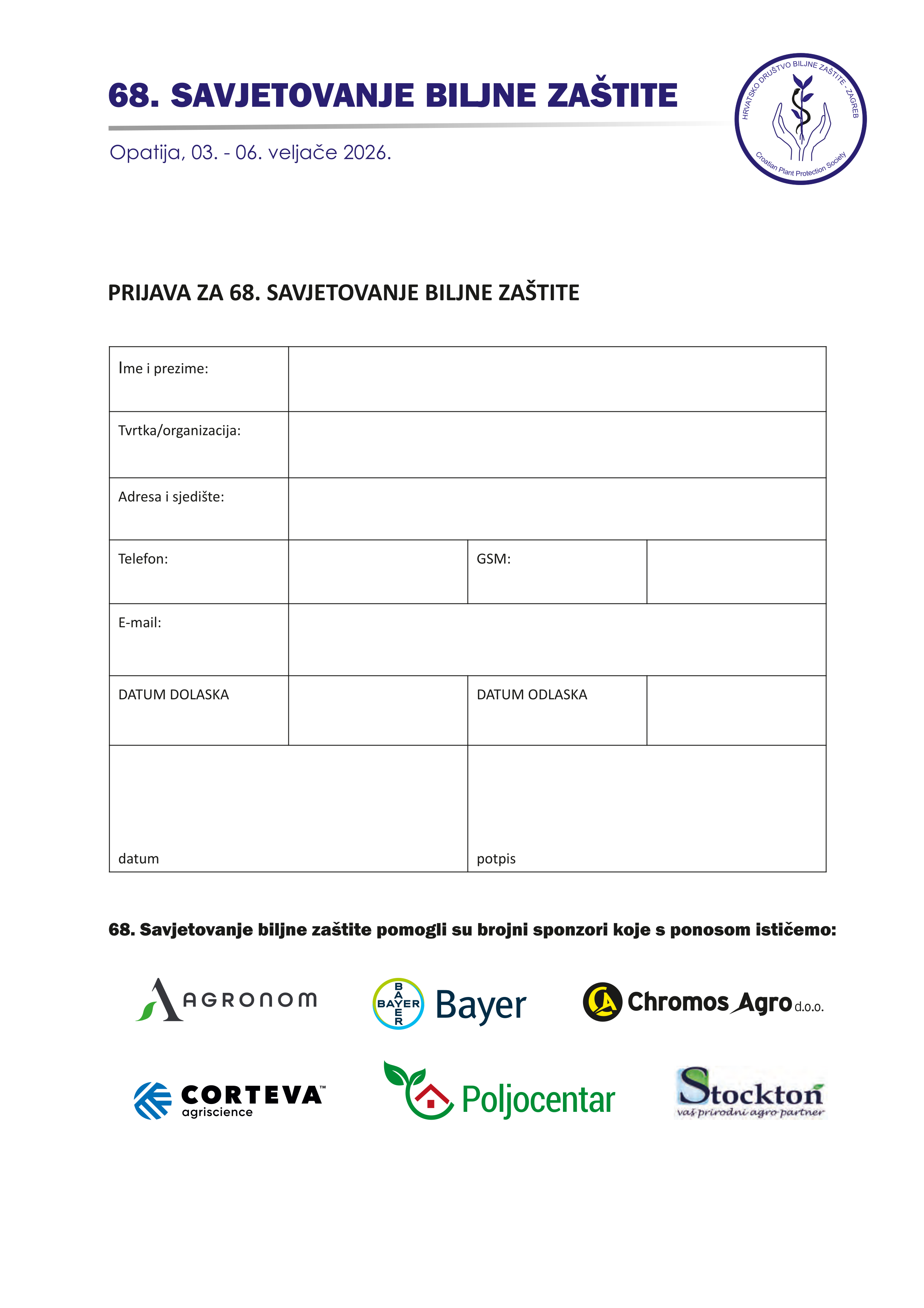 PRIJAVA ZA 68. SAVJETOVANJE BILJNE ZAŠTITE